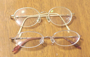 写真上が今までの眼鏡。下が新しい眼鏡。もっと小さいやつにしようと思ってたんだけど、お店で試着したら全然似合わなかったので、結局今までのをちょっと横につぶした程度で、あまりイメージ変わらないやつになっちゃった。横幅はむしろ広がってます。写真の遠近法で後ろが小さく見えるだけでなく、実際幅が広いのよ。